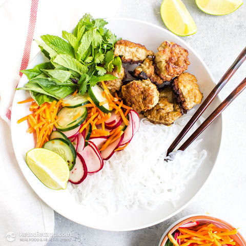 This Vietnamese Turkey Meatball Bowl is one of my favorite lunches! It keeps well once it’s prepared so it’s great as a packable lunch. This recipe is super low carb but totally indulgent with the miracle (shirataki) noodles. They are a favorite in my house! If you’ve never prepared Miracle Noodles check out this post. There’s a few tricks you need to know in order to make them taste like real noodles.